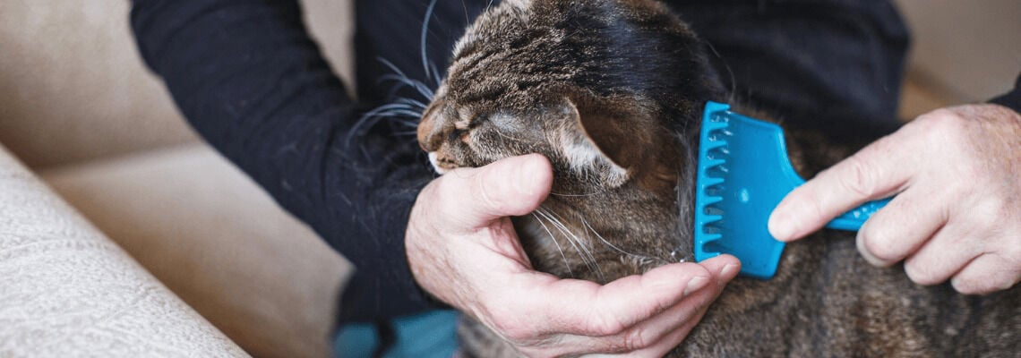 Komt je kat vaak buiten? Controleer hem dan regelmatig op vlooien. Dit doe je met een vlooienkam. Ontdek je zwarte korreltjes in de vacht tijdens het borstelen? Dan kan dit betekenen dat je kat last heeft van vlooien. De zwarte korreltjes zijn waarschijnlijk de uitwerpselen van de vlooien. In dat geval is het nodig om vlooien te bestrijden bij je kat.