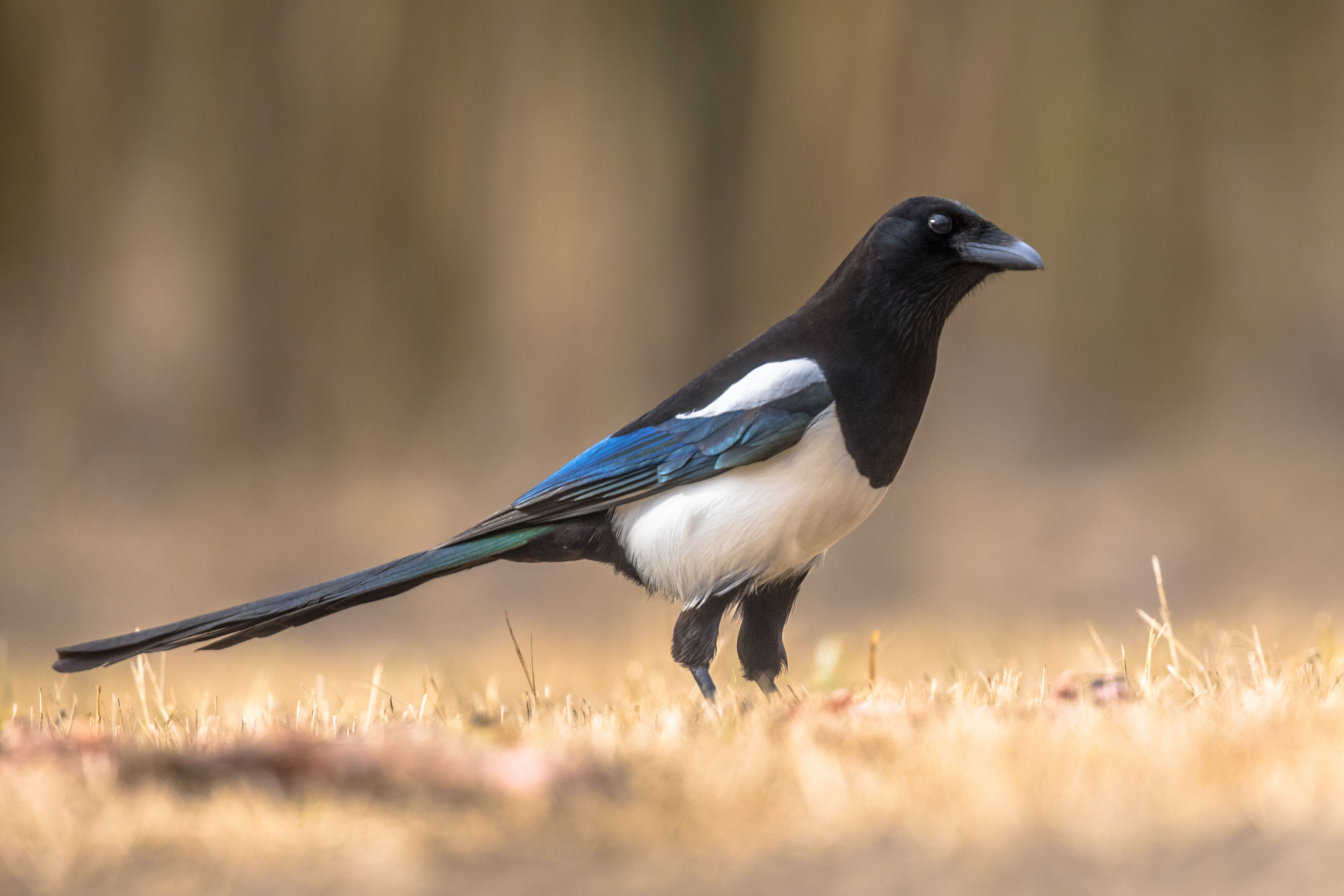 Eksters lopen vaak vol trots over het gras of hippen rond in tuinen op zoek naar eten.