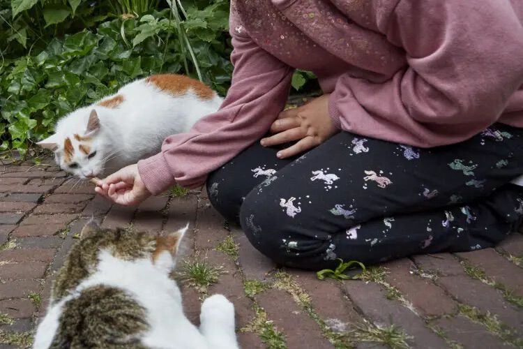 Het is beter om je kat geen snacks voor mensen te geven. Snacks voor mensen zitten vol suiker, vet en zout. Ook kan het gevaarlijk zijn voor de gezondheid.