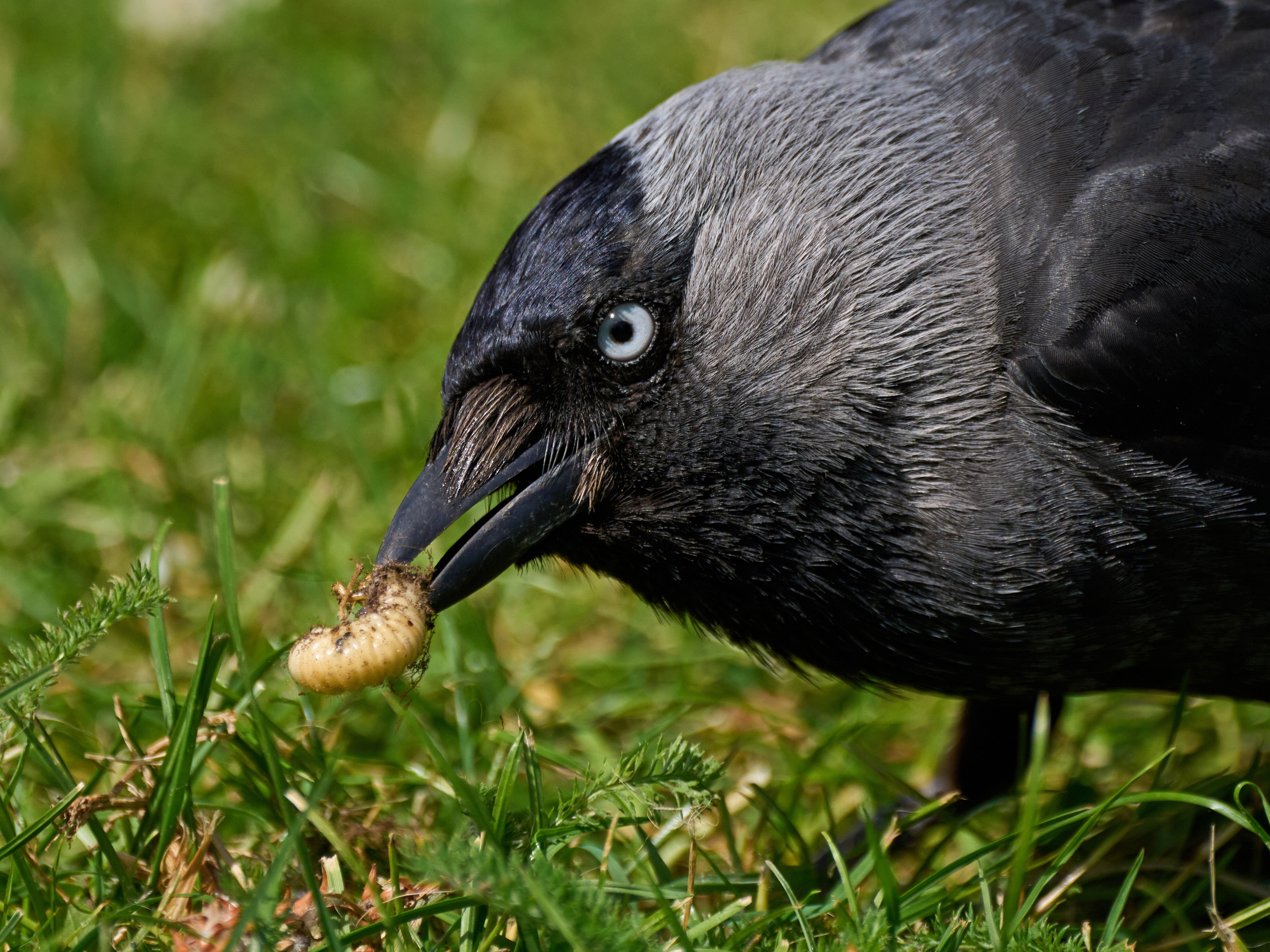 De kauw is een alleseter en past zich gemakkelijk aan. Hij zoekt zijn voedsel vaak op de grond en is dol op: