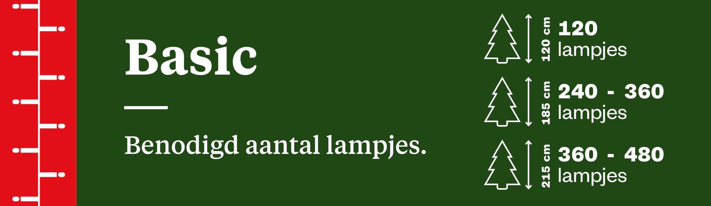 Wil je energiezuinige kerstverlichting voor een voordelige prijs? Kies dan voor Basic verlichting. Dit zijn de standaard ledlampjes voor in je kerstboom. De afstand tussen elk lampje is 7,5 cm.
