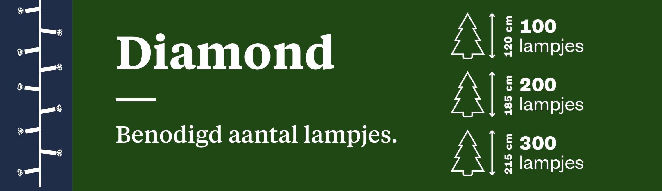 Diamond ledlampjes hebben de vorm van diamantjes. Door deze vorm schiet het licht alle kanten op net zoals bij een echte diamant. De afstand tussen elk lampje is hetzelfde als bij Basic.