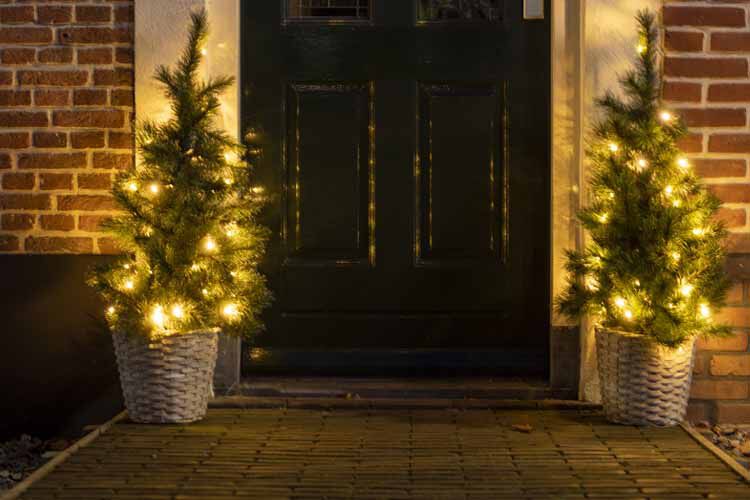 Een buitenkerstboom doet het ook goed bij de voordeur. Ontdek bijvoorbeeld de kunstkerstboomset met twee kunstboompjes en een krans. Daarmee maak je de voordeur het middelpunt van je kersttuin.