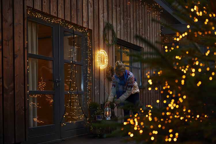 Met lichtjes maak je de donkere decemberdagen wel heel sfeervol. Verlicht het deurkozijn, de balkonreling, de dakgoot, de schutting, de overkapping. Zet lichtgevende tuinstekers in de grond of hang een grote kerstbol op. Heb je een vlaggenmast? Pak dan uit met een betoverende Fairybell. Begint het al te schemeren?