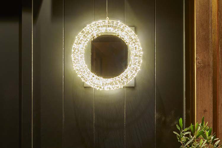 In de kunstkerstkransen met groene takken zitten subtiele lampjes verwerkt. Wil je geen groen, wel licht? Ga dan voor lichtgevende kerstkransen.