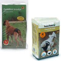 - Hondenluiers en broekjes. Een loopse hond kan best wat gedoe opleveren in huis. Om vlekken op de vloer en in de vloerbedekking te voorkomen zijn er speciale hondenbroekjes. Deze doe je om bij je hond. Ook zijn er luierbroekjes verkrijgbaar die je jouw hond binnenshuis kunt aantrekken.