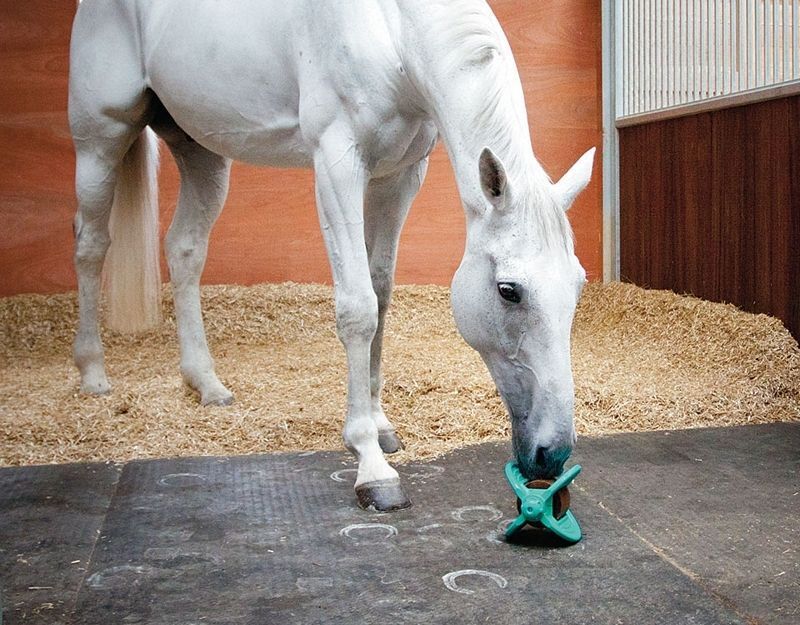 Maak de stal interessant met speelgoed en voerpuzzels. Er zijn allerlei voerspeeltjes te krijgen die je bijvoorbeeld kunt vullen met hooi, wortels of muesli. Of hang een liksteen op. Ideaal om je paard bezig te houden en het is ook nog eens gezond!
