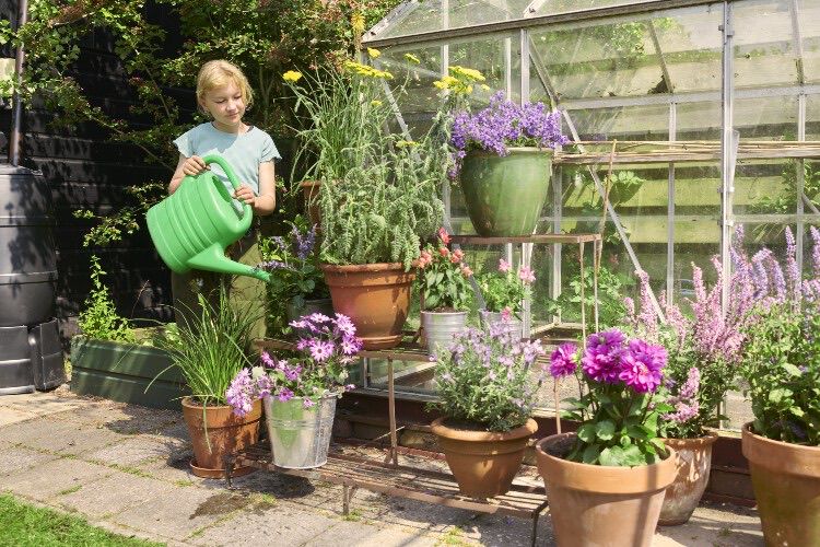 - Gebruik potten en bakken met gaten in de bodem en zet ze op schotels. Zo blijft het extra water in de schotels staan. Klaar voor je planten wanneer ze het nodig hebben!