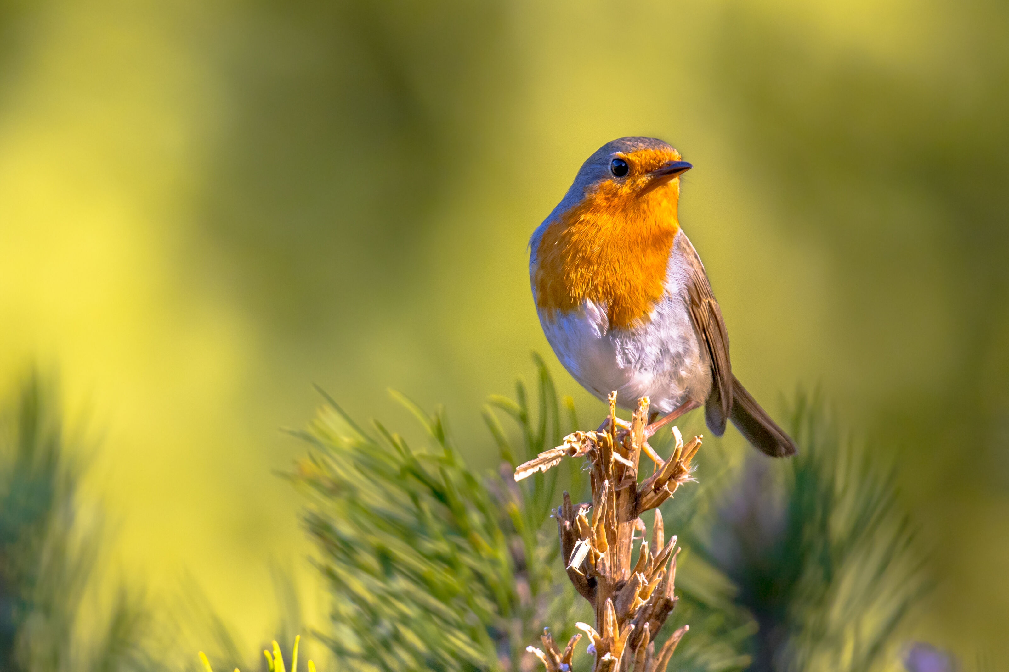 De roodborst houdt van een rustige tuin met veel beschutting. Je helpt hem met: