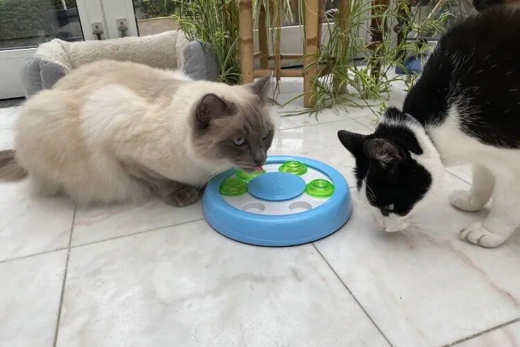 Er zijn verschillende speeltjes voor verschillende niveaus. Het ene spel is moeilijker dan het andere. Het principe is vaak hetzelfde. Je verstopt wat kattensnoepjes of kattenvoer in het speeltje en laat jouw kat het ontdekken.