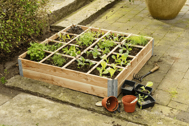 Maak zelf een vierkante meter bak of koop een kant-en-klare moestuinbak. Zo'n kant-en-klare bak zet je zonder gereedschap in elkaar. Er zit worteldoek bij. En met de bijgeleverde scheidingslatten maak je eenvoudig de negen vakken.