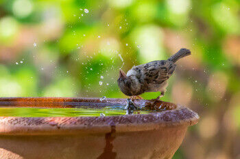 Niet alleen planten, maar ook de dieren in je tuin hebben water nodig om te drinken en af te koelen. Zet waterschalen op beschutte plekken, niet in de felle zon, anders drogen ze snel op.
