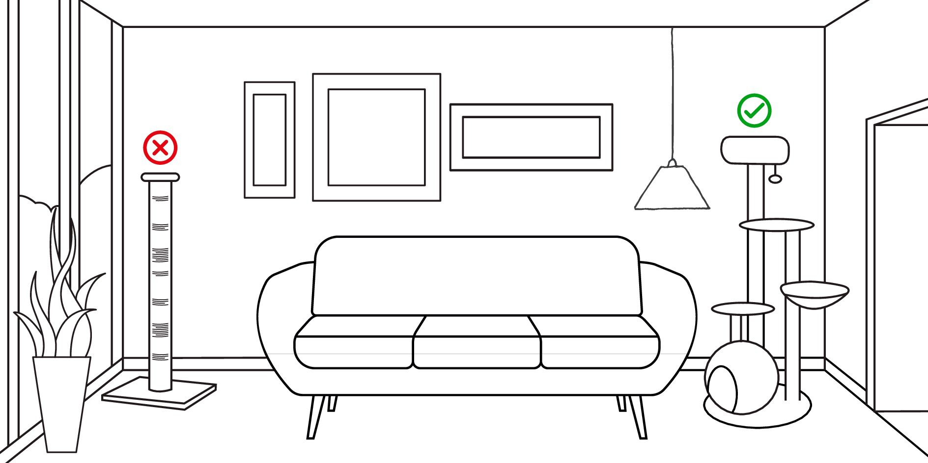 Katten houden ervan om even lekker te krabben wanneer ze net wakker zijn. Het is daarom slim om de krabpaal in de buurt van zijn slaapplek te plaatsen.