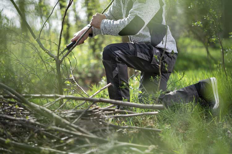 Een werkbroek of een Amerikaanse overall doen het goed in het groen. Deze kledingstukken zijn gemáákt om in te bewegen. Perfect voor de uren die je buiten doorbrengt. Let er bij het kiezen van je werkbroek in het bijzonder op dat de kniestukken of de uiteinden van de broekspijpen gemaakt zijn van een verstevigde stof. Zeker als je geregeld door dichte struiken en langs prikkelige takken loopt of op je knieën planten gaat poten.