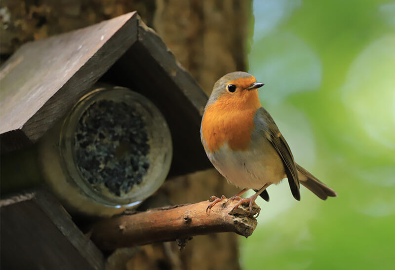 Het roodborstje herken je meteen aan zijn ronde lijf en oranje borst. Hij is vaak alleen, nieuwsgierig en komt dicht bij mensen. Met zijn heldere zang brengt hij veel sfeer in de tuin.