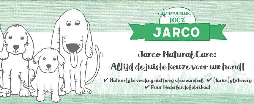 Jarco is een Nederlands bedrijf dat hondenvoer en kattenvoer maakt. De eerste voedingen ontwikkelde en testte het bedrijf eind jaren zestig, dit deden ze samen met (collega-)fokkers. Jarco brokken zitten in vrolijke verpakkingen en zijn ontwikkeld om je hond of kat natuurlijk gezond te houden. Het hondenvoer bijvoorbeeld geeft je hond volop energie en voeding, de brokken van Jarco zijn een compacte brok die in de maag uiteenvalt. Ze zijn licht verteerbaar. En dankzij de toevoeging van extra ingrediënten – onder meer zalmolie – geven de brokken je hond of kat een gezonde huid en een glanzende vacht.