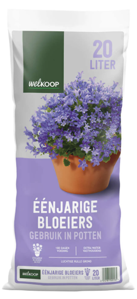 - Bestaat uit turf, aangevuld met bodemverbeteraars of plantversterkers