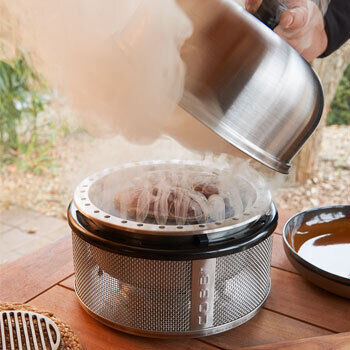 Een bijzondere belevenis is roken met je Cobb. De Cobb is een geweldige rookoven. Roken gaat eenvoudig met een handjevol rookpellets (van samengeperst hout) die je in aluminiumfolie op de briketjes of de Cobble Stone legt. Gebruik bij het roken altijd de deksel.