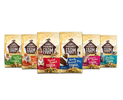 Supreme heeft verschillende voedingslijnen voor knaagdieren. Tiny Friends Farm bijvoorbeeld, en de ‘premium’ voedingslijn Science Selective.