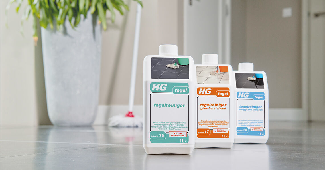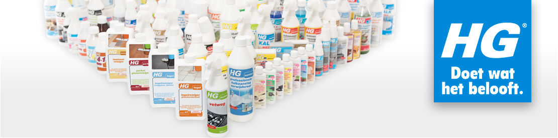 HG is dé vloerenspecialist! Of het nu gaat om tegels, natuursteen of gelakt parket, HG heeft de juiste producten voor het verwijderen van cementsluier, voor reiniging, voor bescherming tegen krassen en tegen slijtage. Zo is er bijvoorbeeld de HG tegelreiniger, waarmee je binnen een handomdraai jouw tegelvloer streeploos laat stralen. Maar ook voor andere soorten vloeren, zoals laminaat, hout (voorzien van olie of was), kunststof of tapijt vind je een reinigingsmiddel in het uitgebreide assortiment.
