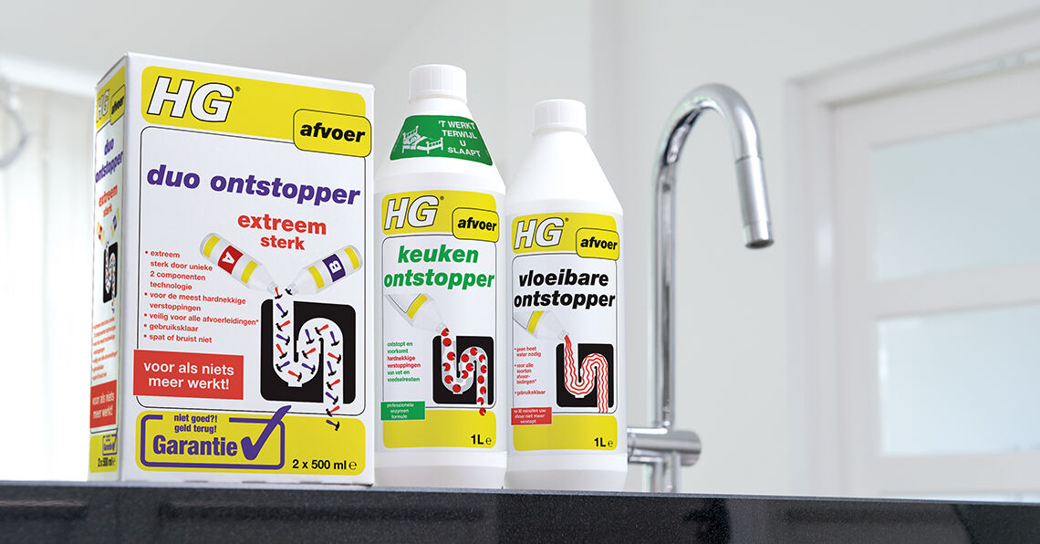 Voor het effectief ontstoppen van de afvoer of het verwijderen van afvoerstank zijn diverse HG ontstoppers op de markt gebracht. Bijvoorbeeld de HG gootsteenontstopper voor het ontstoppen van een verstopte gootsteen als gevolg van etensresten, vet en olie. Is het doucheputje verstopt? Dan kies je voor HG haarontstopper, een gebruiksklare ontstopper versterkt met kaliumhydroxide. En mocht de verstopping toch hardnekkiger zijn dan verwacht, dan kun je kiezen voor de HG duo ontstopper, met unieke “niet goed, geld terug garantie”
