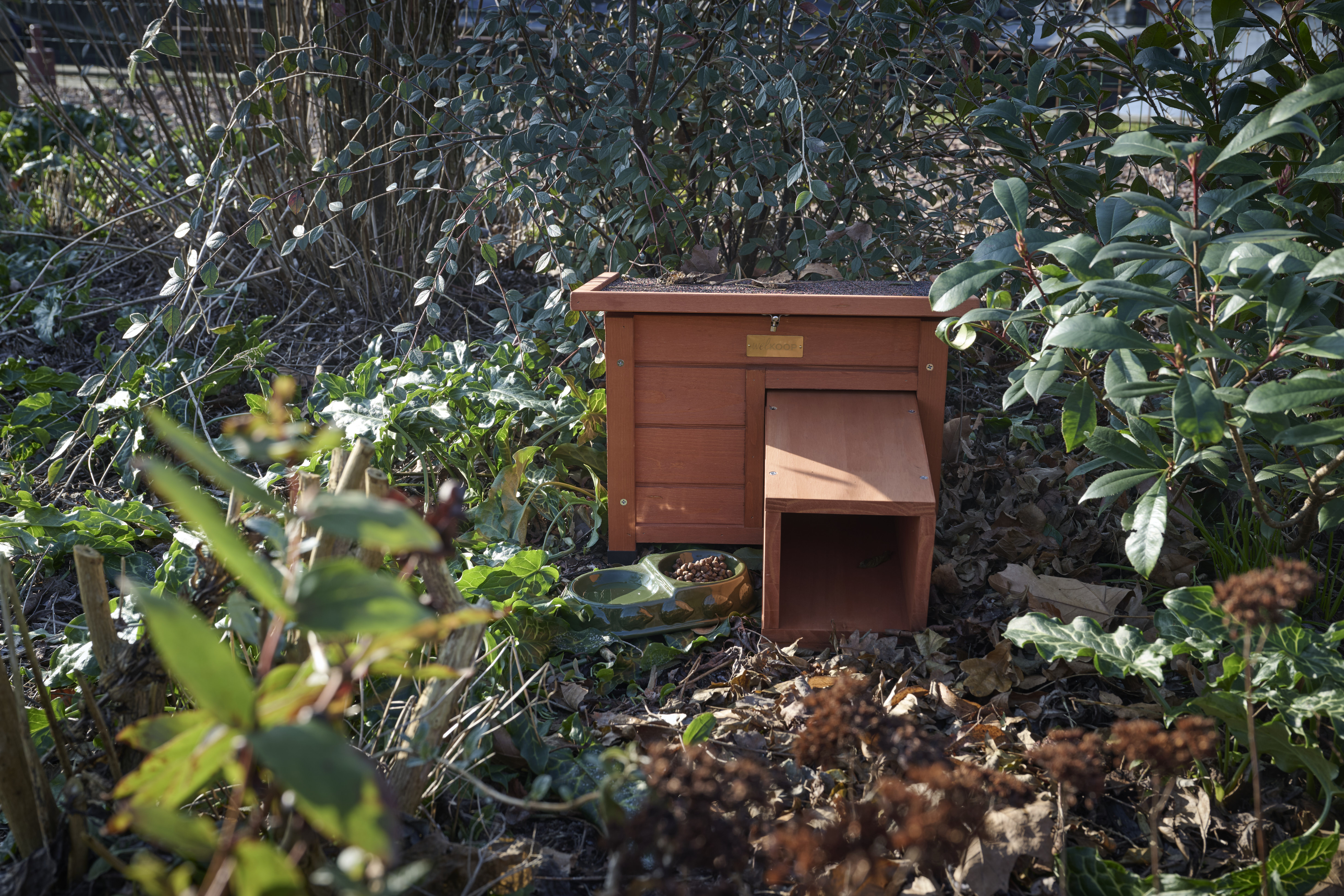 Egels maken zich vanaf deze maand klaar voor de winterslaap. Met een egelhuis in je tuin, geef je ze een geschikte plek. Zet het egelhuis op een rustige, beschutte plek in je tuin onder wat begroeiing. Leg wat droge bladeren in en rondom het huisje, zodat de egel zich goed kan nestelen. Zo vergroot je de kans dat egels jouw tuin als veilig toevluchtsoord zien.